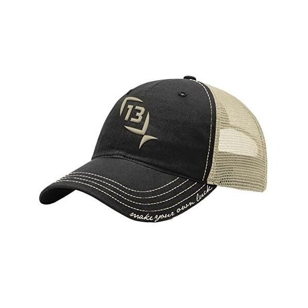 13 Fishing HUS2 Standard Issue The Sully, Black Curved Brim, Snapback Ballcap, Black WTan Fish Logo, Unstructured, Mesh Back 810104112475
