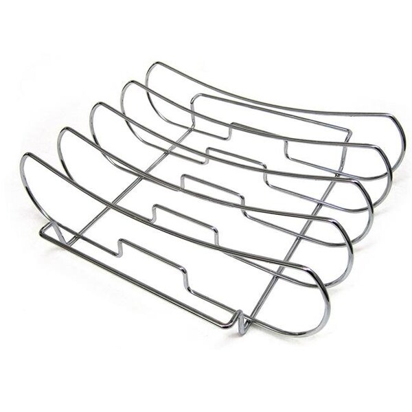 Maximize grills space by standing up slabs of ribs and chicken quarters. Dishwasher safe, heavy-duty plated steel.