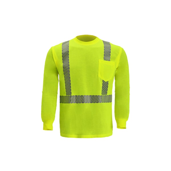 Hi-Vis Long Sleeve T-Shirt with Reflective Stripes, Polyester, Lime, S