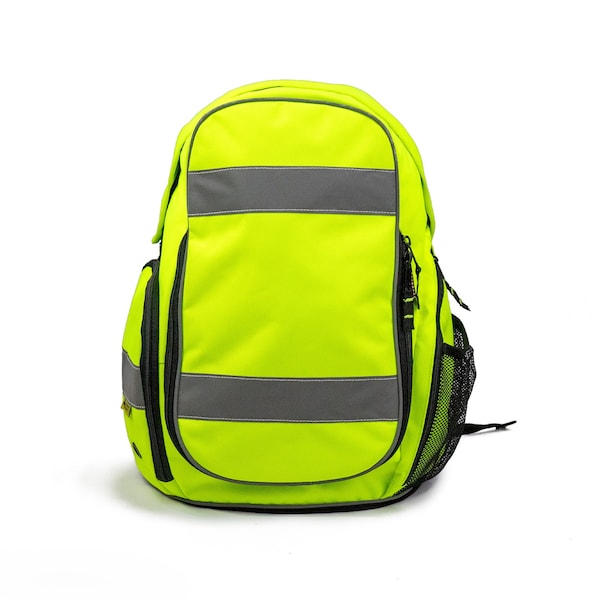 - High viz, roomy backpack with 2" reflective trims for extra visibility