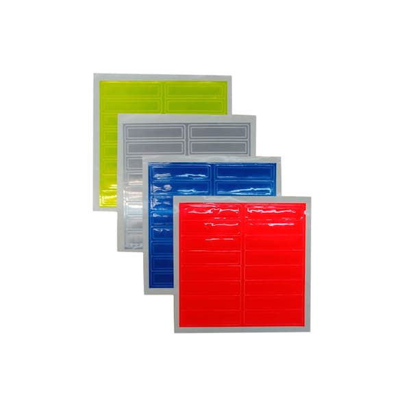 MICROPRISMATIC REFLECTIVE VINYL - 16 Sticker Per Sheet RO - RED ORANGE; BL - BLUE, WT- WHITE; LY- LIME YELLOW