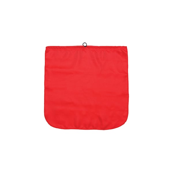 Red cotton, 18 in.x18 in. flag. 12.5 gauge wire hanger.