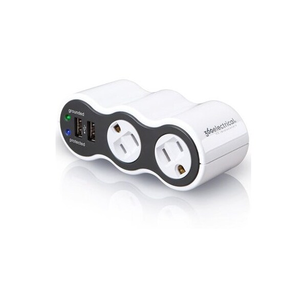 Power Curve , 306 Joules, 2 Front Facing 34A USB Ports For Charging, 2 Outlets Rotate 360 Degree To Fit Large Plugs, 15A, 120V, 1800W, 60Hz, EMIRFI Noise Filtration 150 KHz 100 MHz Up To 40 Db, Fold Travel Plug