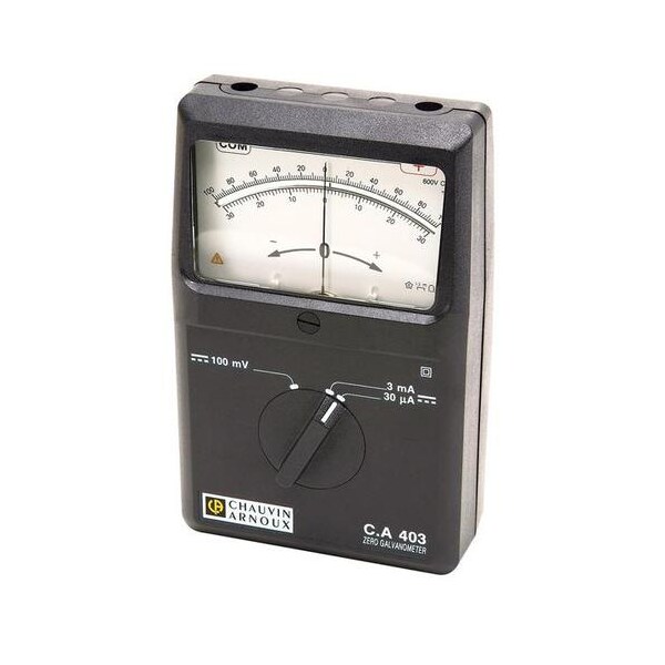 Reasonably priced, sturdy and easy-to-use analog measuring instrument with moving coil instrument and rectifier, particularly well-suited for student and practical experiments, may be used as a DC micro-ammeter and DC millivoltmeter. This device has only one control knob, includes safety sockets and quick-break fuses, is electrically protected and double-insulated.