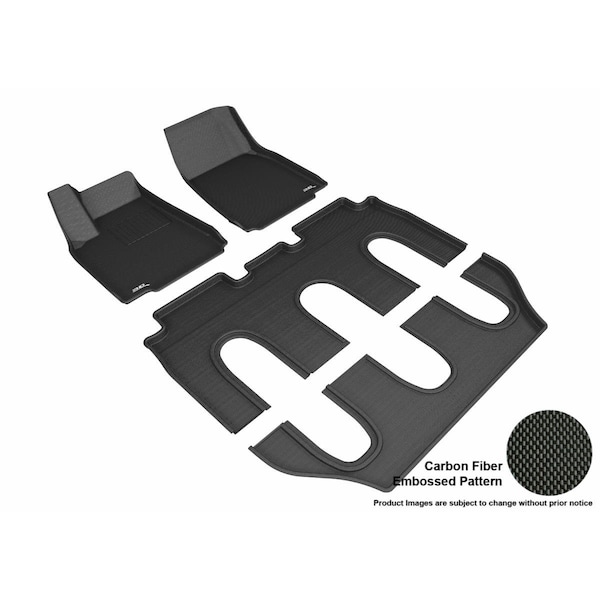 Unlike the traditional floor mats with heavy weights commercial rubbery looking; 3D MAXpider custom-fit floor mats are the revolutionary interior protection for your vehicles with an innovative unique three-layer structure. The digitized three dimensional design measured to exact cabin contours of your vehicle for trapping mess and spills yet patented anti-skid backing keeps mats in place without harming the original carpet. Choices of stylish carbon fiber texture rubber surface or classic looped fabric surface. Features -3D digitized design matches each vehicle application -Raised edges give maximum coverage -Waterproof effectively protects vehicles interior -Maxpider patented bottom layer keeps mats in place without harming original carpet -Shock and sound absorbent inner layer -Easy care non-slip rubber surface layer -Environmental friendly material non-toxic and odorless -Non-folding 7 seats Compatibility -2016-2017 Tesla Model X Specifications - Color: Black - Material: Rubber - Style: Molded - Weight: 8 lbs