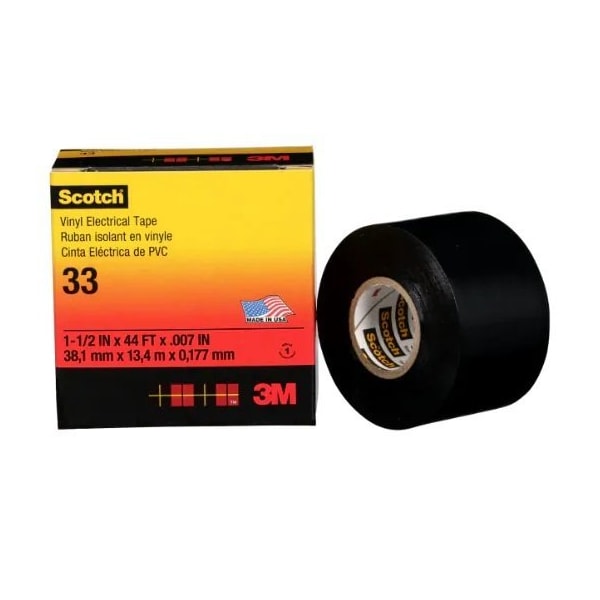 Scotch Vinyl Electrical Tape 33, 1-1/2 in x 44 ft, Black, 10 rolls/carton