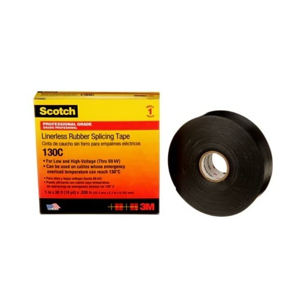 Scotch Linerless Rubber Splicing Tape 130C, 1 in x 30 ft, Black