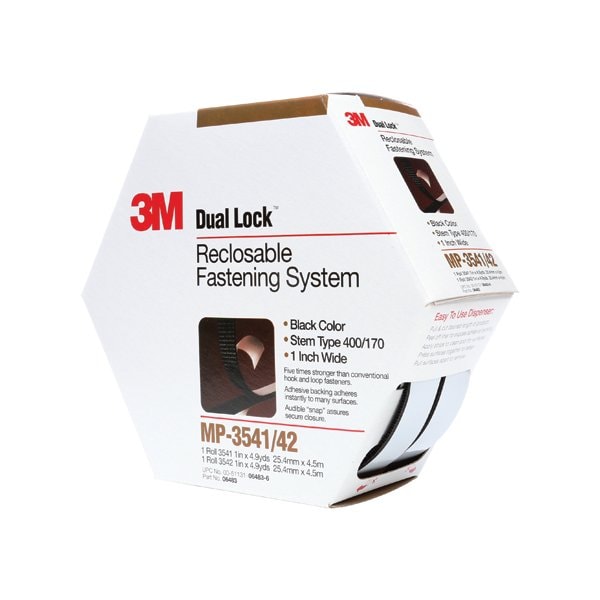 Fastens heavy items creating a more permanent bond. Rigid plastic stems interlock for hundreds of closures; Rubber based adhesive on back of a polypropylene, reclosable fastener; 15 feet of usable product. 2 rolls per pack; Designed to bond to many plasticase, powder coated paints and other low surface energy materials; Handles temperatures up to 120 degrees F. This product is equivalent to part number: S-15826. Alternate UPC: 00051131064836 . Sold in a quantity of 5 per case.