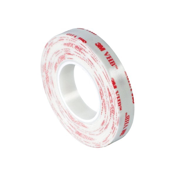 Super strong VHB Tape provide the simplicity of a tape fastener with incredible strength that in many situations, replaces rivets, bolts, screws, spot-welds, liquid adhesives and other permanent fasteners. Use to attach stiffeners; bond aluminum skin to steel support of trucks, vans and ambulances; or bond architectural signs to frames; General purpose adhesive on both sides of firm type foam; Moisture, solvent and UV resistant; Temperature range -40 degrees F to 200 degrees F; Kraft paper liner with white acrylic foam and an acrylic adhesive; UL746C; Data Sheet; Brochure.