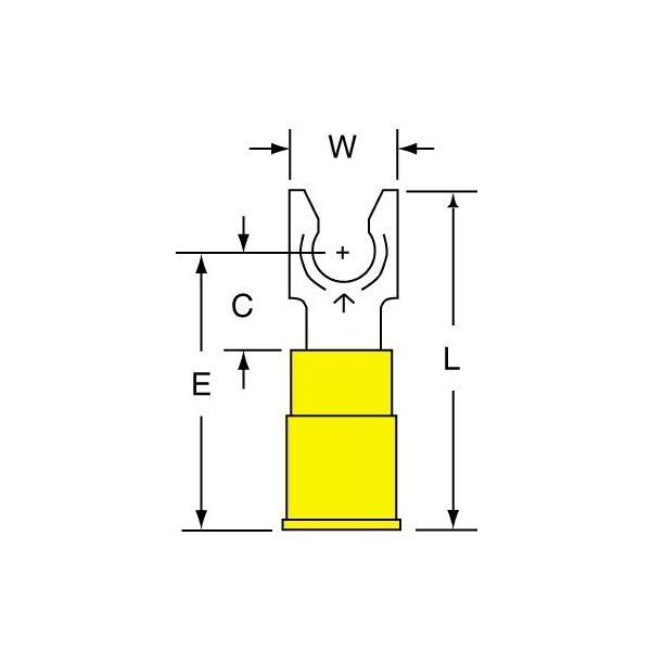 3M Vinyl Insulated Butted Seam Locking Fork Terminal, SS-33-10-P, spring-like tongue firmly fits around the stud