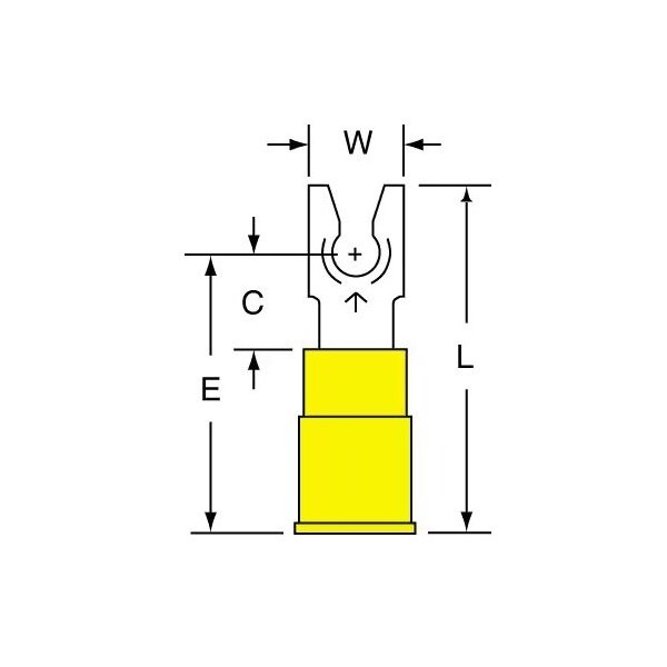 3M Vinyl Insulated Butted Seam Locking Fork Terminal, SS-33-6-P, spring-like tongue firmly fits around the stud
