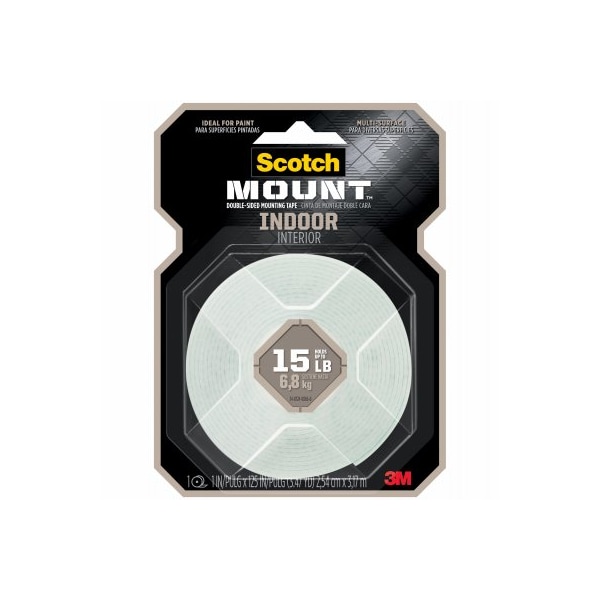 Scotch 1 x 125 25 4 mm x 3 17 m Indoor Mounting Tape Double Coated Foam Tape Adheres & Conforms To A Variety Of Surfaces 15 LB Holding Capacity.