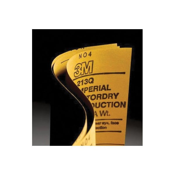 3MTM WetordryTM Abrasive Sheet 213Q is an abrasive sanding paper constructed on a light, A-weight paper backing and features a waterproof resin bonding to help prevent heat buildup. The aluminum oxide abrasive and waterproof backing make this paper an ideal product for sanding applications such as paint prep, sanding, sealer sanding, and solid surface finishing. FAST CUTTING ABRASIVE: Aluminum oxide abrasive cuts fast and helps deliver a consistent, fine finishFLEXIBLE AND LIGHTWEIGHT: The flexible, light A-weight paper backing easily fits contoured surfaces for consistent sandingWATERPROOF: Waterproof material helps with easy debris removalCUT TO SIZE: Easily cut and fold standard sheets to fit any hand tool