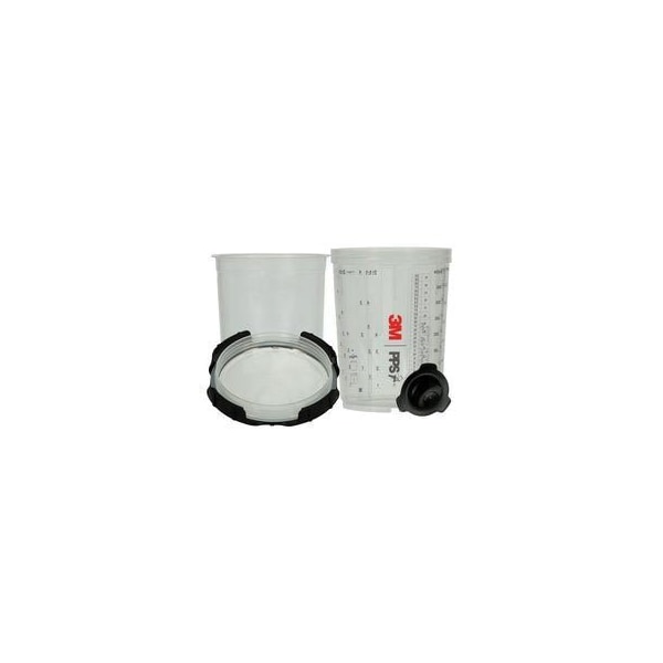 3MTM PPSTM Series 2.0 Spray Cup System Kit is the next generation, highest performing disposable spray cup system for mixing/measuring, filtering, spraying in any direction 360° spray rotation and protecting coatings not in use. Each lid and liner kit contains 50 disposable lids and full diameter filters, 50 disposable liners, 1 reusable hard cup and 32 sealing plugs. LESS WASTE, MORE EFFICIENCY Less paint waste, mess and contamination than traditional methods. Use up to 70% less cleaning solvent and shorten prep and cleanup time by as much as 50% compared with conventional metal paint cup systems