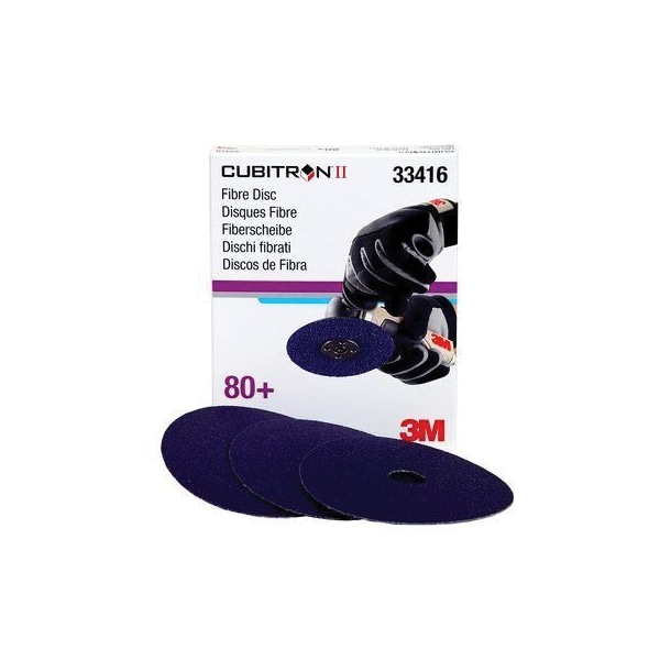 3Ms CubitronTM II Abrasive Fibre Discs is built for faster cutting of welds as well as grinding, weld blending, deburring and other tough metal finishing jobs. 3MTM Precision Shaped Grain a tough, sharp ceramic abrasive is resin-bonded to a stiff fiber backing. This disc lasts significantly longer than conventional ceramic grain discs, delivering a lower cost per grind with fewer disc changes. LONGER LASTING: Helps deliver 30% faster cut and double the life of other premium abrasivesFEWER DISC CHANGES: Get more cut per disc through the heavy-duty stock designFAST CUT: Cuts exceptionally fast with super-sharp 3MTM CubitronTM II technologyUNIFORM ABRASIVE: 3MTM Precision-Shaped Grains PSG provide an efficient cut that evenly slices through paint and metalSELF FRACTURING: Discs maintain sharp edges as grains self-fracture during useSUPERIOR FIBER BACKING: The stiff fiber backing and a strong resin bond offer tear resistance and help increase disc life