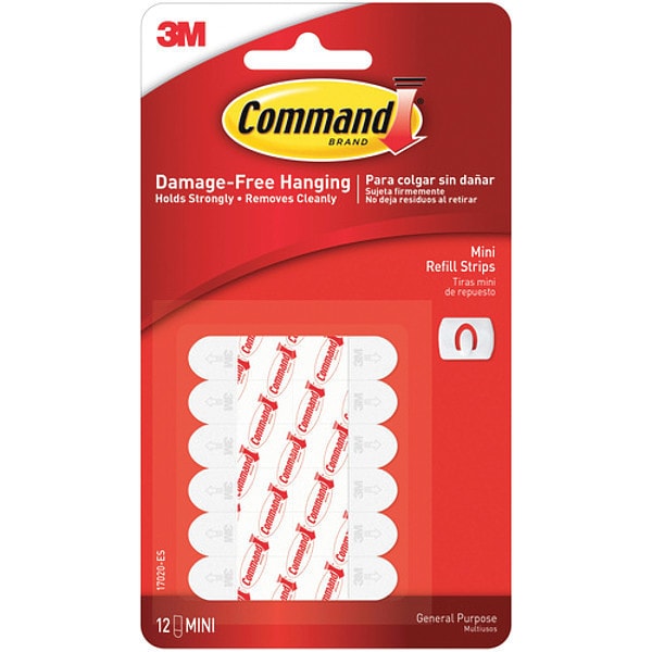 3M 17020 Command Refill Strips, Mini, White, 12 Strips, 6/Packs per Case (Discontinued)