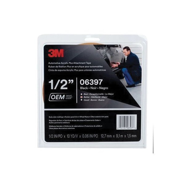 3M Automotive Acrylic Plus Attachment Tape 06397, Black, 1.52 mm, 1/2 Inx10 Yds