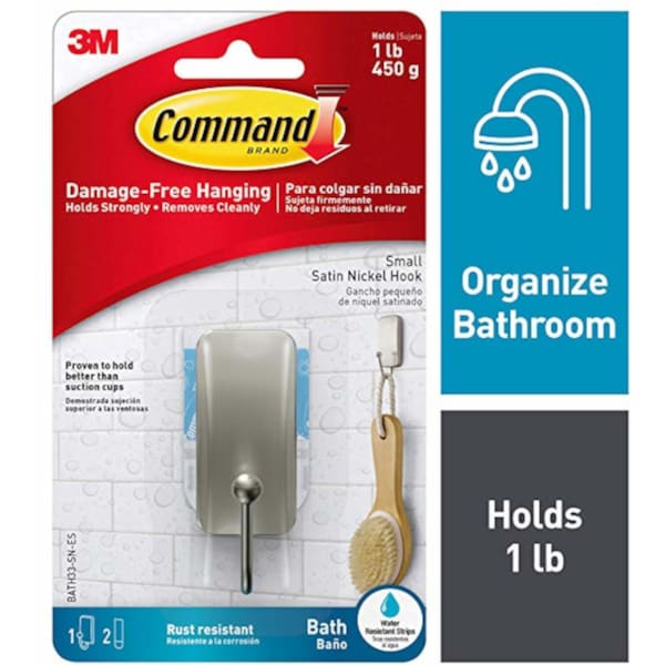 Command Bath Small Hook, Satin Nickel