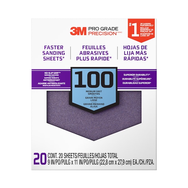 #1 Sanding Performance. 3M Pro Grade Precision Faster Sanding Sheets with enhanced mineral technology resist clogging and sand faster. NO-SLIP GRIP durable backing grips together to prevent slipping. Sand longer with less hand fatigue.