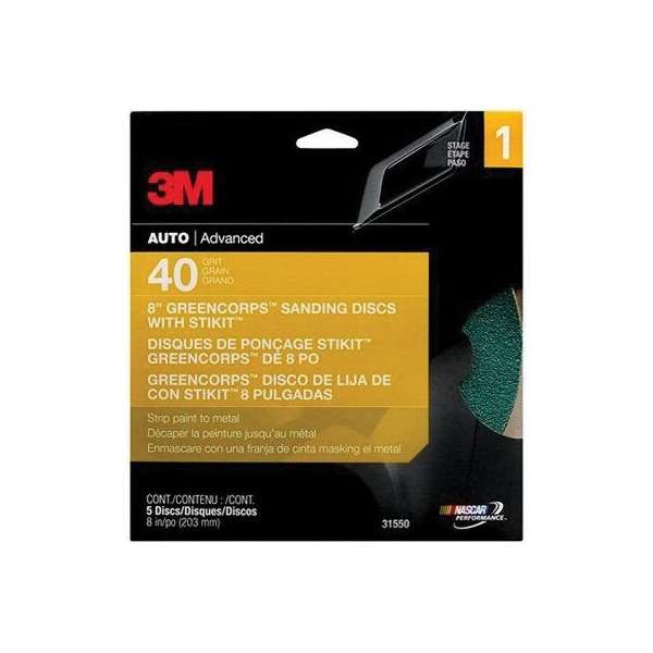 3M Green Corps Sanding Disc with Stikit Attachment, 31550, 40 Grit, 5PK