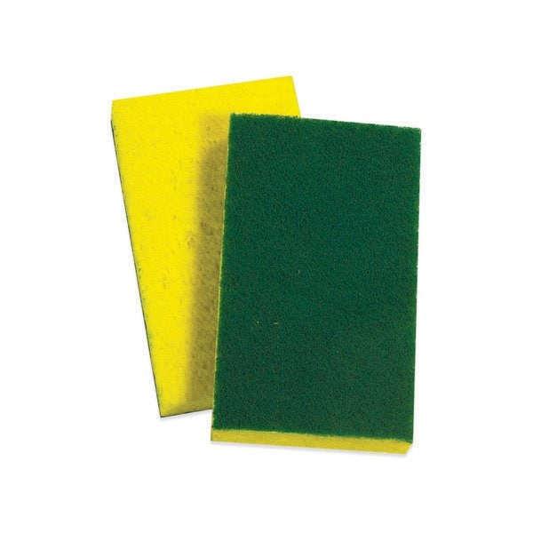 Dual-action absorbent sponge and scouring pad makes cleanup fast and efficient. Green synthetic fiber cleaning pad on one side and yellow cellulose sponge on the other; Intended for use on walls, tables, fixtures, countertops and floors. This product is equivalent to part number: S-11725. Alternate UPC: 50048011206887. Sold in a quantity of 20 per case.