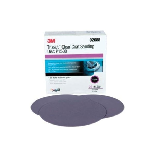 3M Trizact Hookit Clear Coat Sanding Disc, 02088, P1500, 6 in5, 25PK