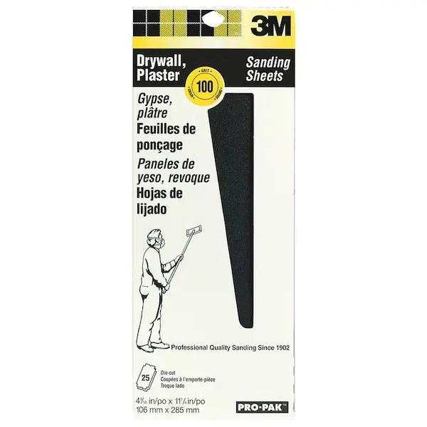 4-3/16" x 11" Drywall Adhesives Drywall Sanding Sheet 100-Grit, PK 25