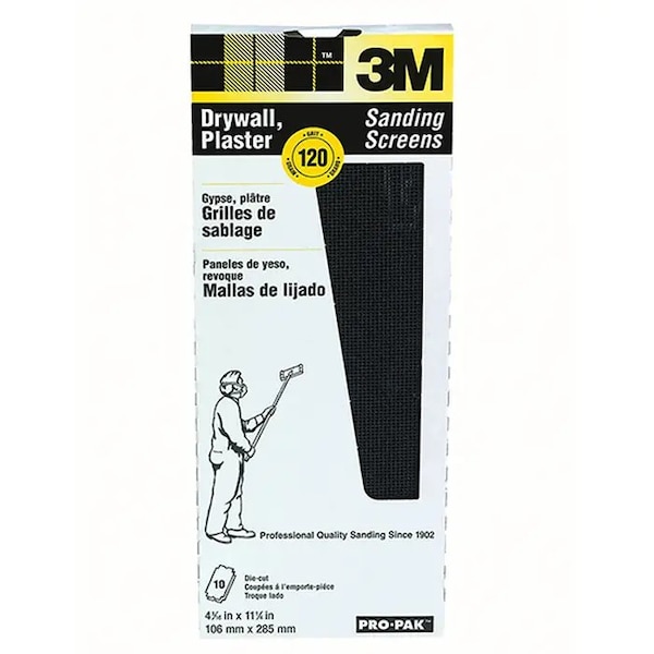 4-3/16"x11-1/4" Drywall Adhesives Die-Cut Sanding Screen 120-Gr, PK 10