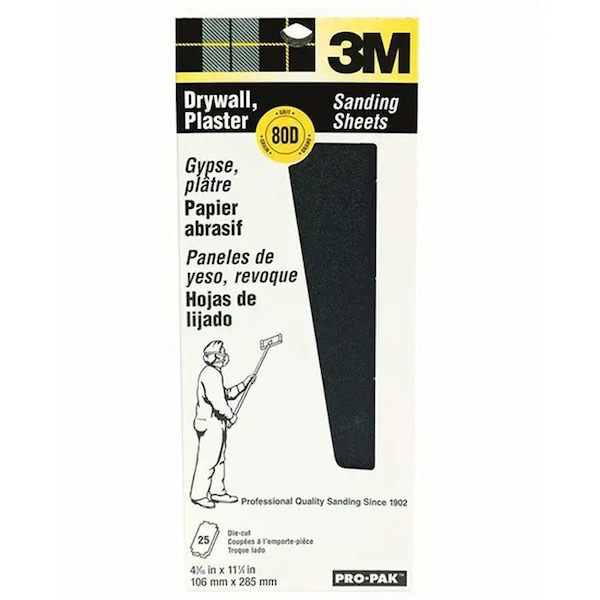 4-3/16"x11-1/4" Drywall Adhesives Drywall Sanding Sheet 80D-Gr, PK 25