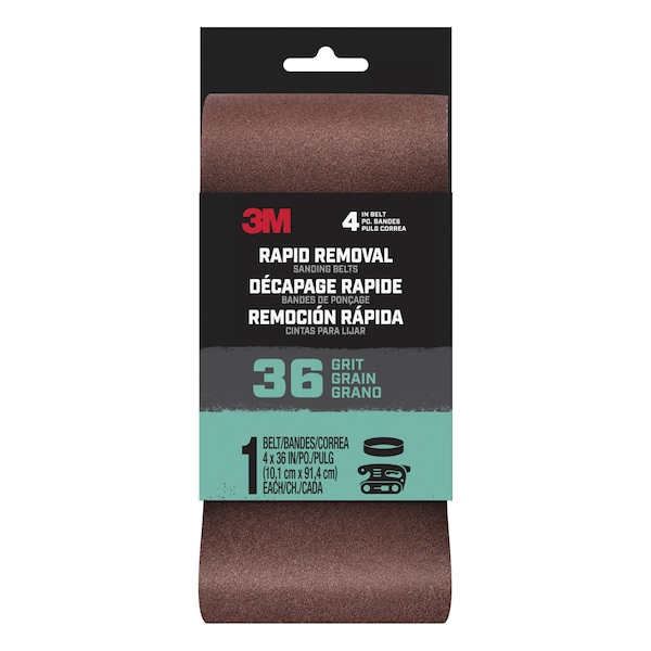 4 in W, 361 in L, Ceramic Aluminum Oxide, 36 Grit, Brown