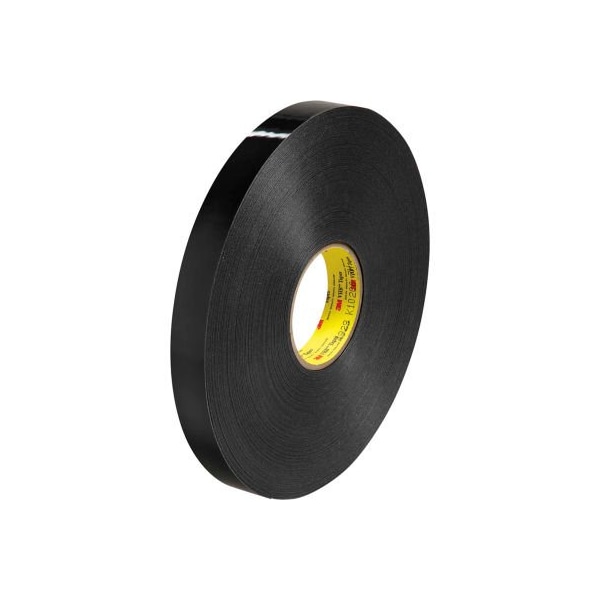3M 4929 double sided vhb acrylic foam tape 1 x 5 yds. 25 mil black - 1 roll super strong vhb tape provide the simplicity of a tape fastener with incredible strength that in many situations, replaces rivets, bolts, screws, spot welds, liquid adhesives and other permanent fasteners. General purpose adhesive on both sides of firm type foam moisture, solvent and uv resistant temperature range -40 f to 200 f clear polyester liner, black foam with an acrylic adhesive ul746c
