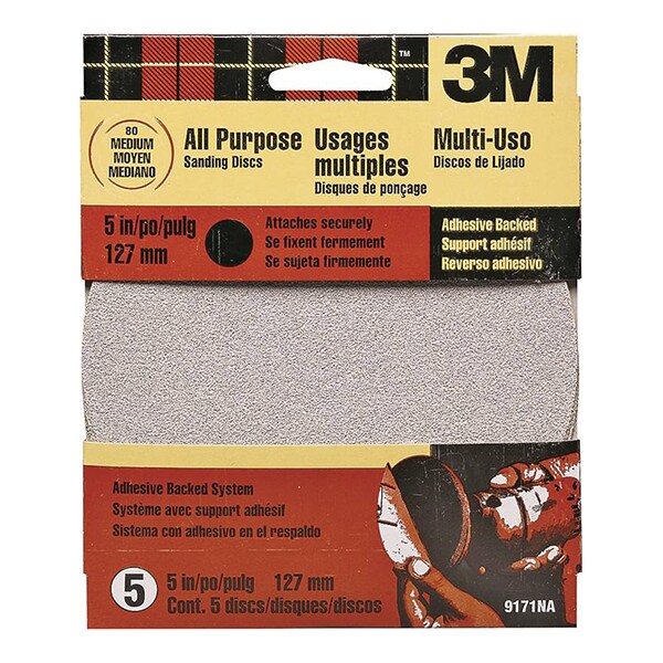 5" Press 'n Sand Sanding Disc, Adhesive Back, 80-Grit Medium, PK 5 (Discontinued)
