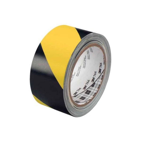 3M 766 striped vinyl tape 2in x 36 yes 5 mil black/yellow - 2/pack use to identify and mark traffic areas and physical hazards. Easy to apply which creates minimal downtime of production area. Durable vinyl backing resists abrasion, scuffing, moisture, weathering acids and alkaline chemicals for long service life. Rubber adhesive sticks on contact most surfaces for fast application with no dripping, drying or clean-up. Bright colors are locked into the vinyl for permanent high visibility. General purpose. 5.0 mil.