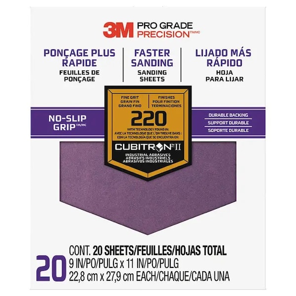 3M Advanced Sandpaper is now better than ever, thanks to our NO-SLIP GRIP Backing that is applied to the back of our 3M PRO GRADE Sandpaper. NO-SLIP GRIP Backing provides longer sheet life - 7 times longer than conventional sandpaper. For the best sanding results, sand with the grain of the wood and work through a sequence of grits, from coarse to ultra fine, skipping no more than one grit between sandpaper.