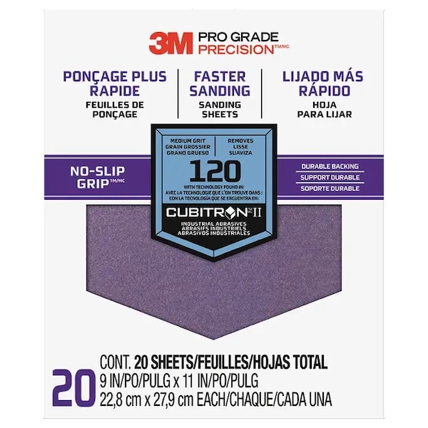 3M Advanced Sandpaper is now better than ever, thanks to our NO-SLIP GRIP Backing that is applied to the back of our 3M PRO GRADE Sandpaper. NO-SLIP GRIP Backing provides longer sheet life - 7 times longer than conventional sandpaper. For the best sanding results, sand with the grain of the wood and work through a sequence of grits, from coarse to ultra fine, skipping no more than one grit between sandpaper.