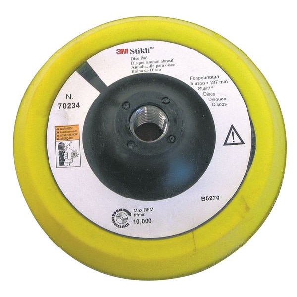 PSA Disc Backup Pad, Abrasive Mount Type Adhesive-Backed, Abrasive Mounting Quick Change System Not Applicable, Connector Size 5/8 In.-11, Connector Type Threaded Hole, Backup Pad Shape Round, Device Material Foam, Density Medium, Maximum Operating Speed 12,000 RPM, Number of Vacuum Holes Non-Vacuum, Color Yellow, Overall Width 5 in, Overall Diameter 5 in, Overall Thickness 1/2 in, Product Type Disc Backup Pad, Package Quantity 5