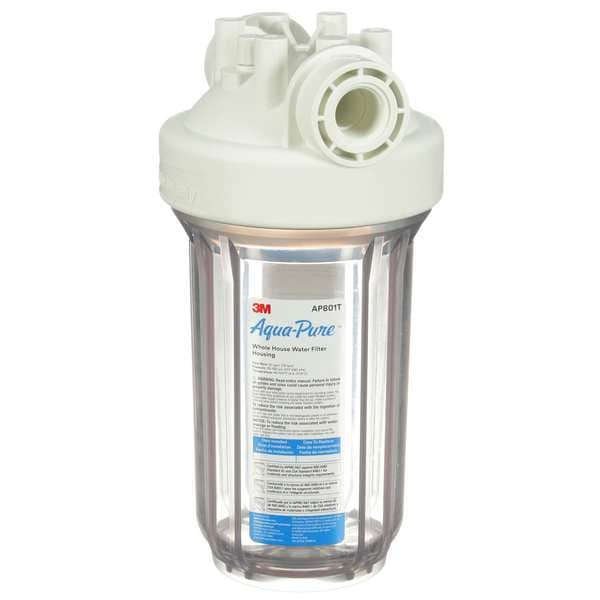 Water Filter Housing, Housing Material Polypropylene, Flow Rate 20 gpm, Connection Size 1 in, Overall Height 14 1/8 in, Overall Diameter 7 1/4 in, Connection Type NPT, Overall Length 14 1/4 in, Overall Width 11 1/2 in, Color Clear, Compatible Mfr. Model Number AP810, AP811, AP817, Compatible with Grainger Part Number 1ZKX3, 4LW37, 4RP82, Features Protects Pipes and Appliances, Provide Drinking Water from Anywhere in the Home