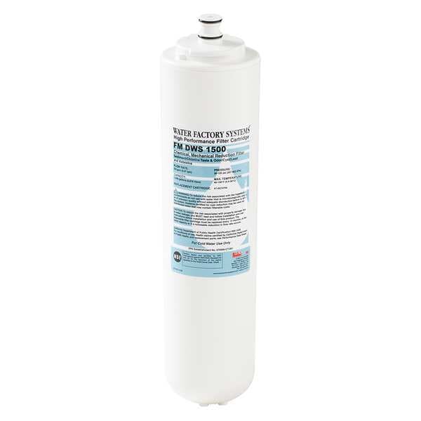 Quick-Connect Water Filter, For Use With Under Sink System, Water Factory System, Reduces Asbestos, Chlorine Odor, Chlorine Taste, Cyst, Lead, Particulates, Micron Rating 0.5 micron, Flow Rate 0.6 gpm, Diameter 4 in, Overall Height 13 3/8 in, Service Life 1,500 gal, Filter Media Activated Carbon, Maximum Temperature 100 Degrees F, Application Drinking Water, Residential Filtration, Water Filtration, Whole-House Filtration, Standards FDA CFR-21, NSF 53, Series Water Factory Systems