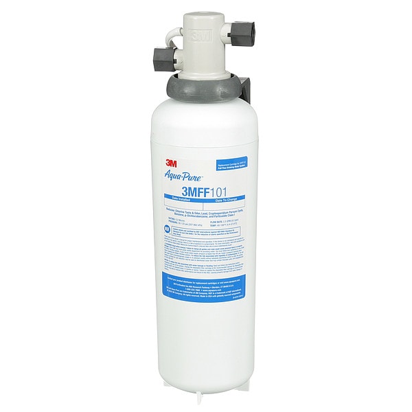 Water Filtration System, Reduces Chlorine Odor, Chlorine Taste, Cyst, Lead, Micron Rating 0.2 micron, Connection Size 3/8 in, Overall Height 16 in, Width 4 1/2 in, Service Life 6,000 gal, Includes Valve Valve Included, Flow Rate 2.5 gpm, Application Under Sink, Color White, Compatible Mfr. Model Number 3MFF101, Compatible with Grainger Part Number 6DWP1, Connection Type NPT, Filter Media Activated Carbon, Pleated Membrane, Prefilter Wrap, Head Material Polypropylene