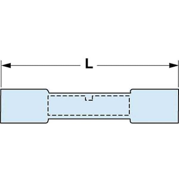 Splice Connector, Connection Type Crimp, Insulation Color Blue, Maximum Operating Temperature 221 Degrees F, Maximum Voltage 600 V, Minimum Wire Size 16 AWG, Maximum Wire Size 14 AWG, Standards CSA Certified, RoHS 2011/65/EU, UL Listed, Contact Material Copper, Overall Length 1.3 in, Seam Style Butted, Barrel Inside Diameter 0.095 in, Insulation Type Heat Shrink, Package Quantity 250