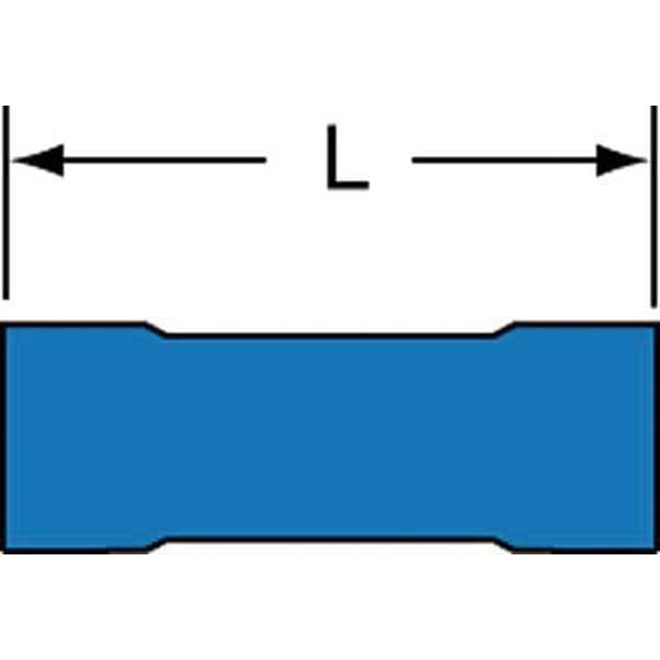 Butt Splice Connector, Connection Type Crimp, Insulation Material Vinyl, Insulation Color Blue, Maximum Operating Temperature 221 Degrees F, Maximum Voltage 1,000 V, Minimum Wire Size 16 AWG, Maximum Wire Size 14 AWG, Standards RoHS 2011/65/EU, Termination Style Crimp, Contact Finish Tin, Contact Material Copper, Overall Length 0.67 in, Seam Style Butted, Barrel Inside Diameter 0.09 in, Body Finish Tin Plated, Body Material Copper, Compatible Installation Tool Model Number TH-440, TH-450, TR-490