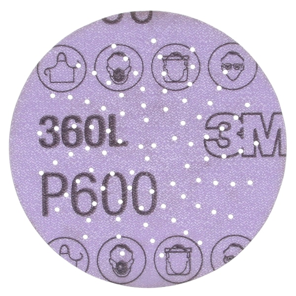Clean Sanding Disc 360L, 20827, 3" P600, 3" Dia, Multi-Hole, Aluminum Oxide, P600 Grit