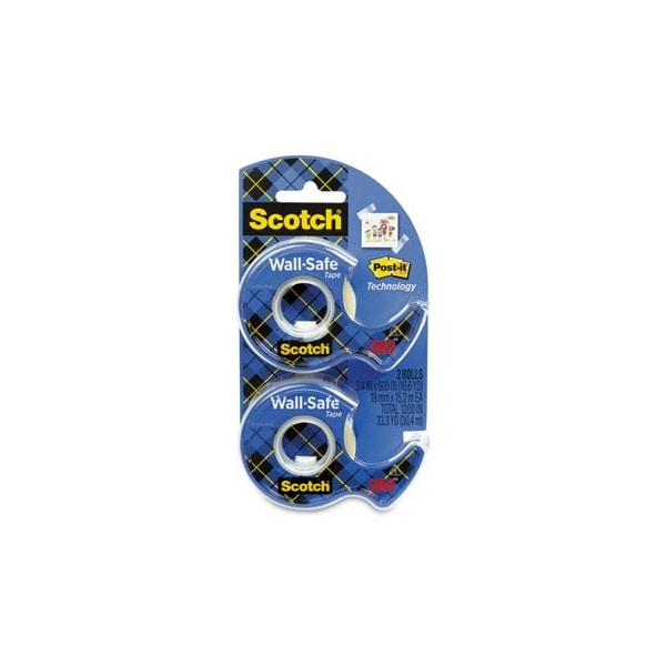 Photos are precious. Art is precious. So is your paint and drywall. Display the things you love without ruining your walls with Scotch Wall Safe Tape. There isnt another adhesive like it. Easy to use, strong and safe tape. Firmly holds kids artwork, decorations, reminders. But when its time for Wall Safe tape to come off, it comes off easily. No residue. No rips. No wall repairs. The unique Scotch Brand dispenser is included, so you get the Wall Safe tape you need with no snags, no waste, no problems. Scotch Wall Safe Tape. Perfect for your walls. For your displays. For you. In Handheld Dispenser. Core Size: 1in; Dispenser Included: Yes; Backing Material: Plastic; Width: 0.75in.