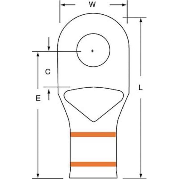 One-Hole Lug Compression Connector, Barrel Size Short, Color Code Orange, Die Code 101, 14, Tongue Angle Straight, Tongue Width 0.91 in, For Conductor Material Copper, For Stud Size 3/8 in, For Stranded Copper Wire Size - Maximum 3/0 AWG, Inspection Hole No, Hole Center to Center Not Applicable, Material Copper, Termination Style Crimp, Seam Style Seamless, Standards CSA Certified, UL Listed, Number of Holes 1, RoHS Compliant Yes, Barrel Inside Diameter 0.51 in, Barrel Style Seamless
