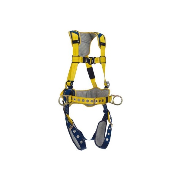 3M dbi-sala delta comfort construction positioning harness, tongue/pass thru, xl1100798 delta comfort harnesses combine a set of industry-first advancements, with popular features making them the workhorse of the industry. Today's delta represents the culmination of more than twenty years of design, research, manufacturing know-how and on-the-job performance. Delta harnesses are as tough as the guys who wear them. These delta comfort harnesses feature shoulder, back and leg padding, coated, corrosion-resistant hardware, and abrasion-resistant webbing and a build quality that is second to none. The padding wraps around you and incorporates vent windows allowing direct air contact and better circulation cooling the body. Built-in shoulder, back and leg comfort padding fixed back d-ring rigid body belt and hip pad with side d-rings tongue buckle leg straps durable, lightweight polyester webbing built-in lanyard keepers with break-away feature revolving vertical torso buckle impact indicator protected labels, equipped with 3Mconnected safety id csid