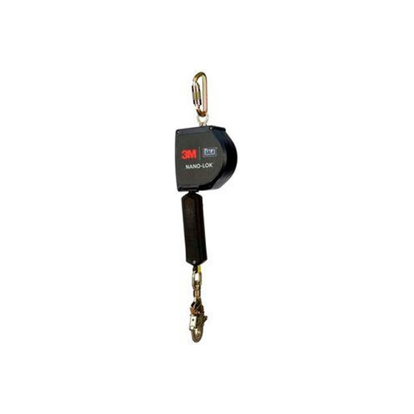 3M dbi-sala 3103866 nano-lok extened self retracting lifeline, 20'l, 420 cap lbs3103866 3M dbi-sala nano-lok extended length self-retracting lifelines srl's are rugged, yet lightweight and carefully engineered devices you can count on for comfortable and efficient fall protection. Stainless steel components, an anti-ratcheting brake system and a semi-sealed design help provide the user with a system built to last. Our srls are backed by decades of proven field service for reliable fall protection. This srl is designed so that the lifeline will extend as the user moves away, and retract automatically enabling the user to move about within a recommended working area at normal speeds. Should a fall occur, a speed sensing brake system activates, stopping the fall and reducing the forces imposed on the user. Impact-resistant housing made of tough thermoplastic housing designed to help withstand demanding worksites speed-sensing brake system provides as low as 6 ft. 2m of required fall clearance swiveling anchorage loop limits lifeline twisting for smooth operation impact indicator dyneema fiber and polyester web lifeline reduces overall weight and the retractable design helps provide freedom of movement durable nitrile energy absorber is a smaller design and last four times longer. High-capacity external energy absorber designed for users and tools up to 420 lbs. 190kg impact indicator provides a visual alert that the srl has been involved in a fall