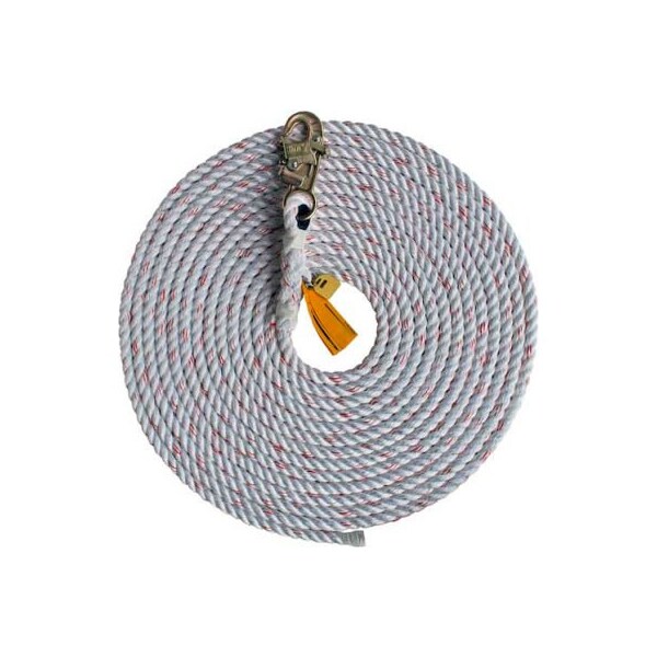 3M dbi-sala 1202844 rope lifeline, 100'l, 310 cap lbs1202844 we offer an exhaustive line of twisted 3-strand and kernmantle type lifelines, available in assembly configurations with a snap hook or simple cut lengths only. We stock various sizes including 12.7 mm, 5/8in 16 mm and 3/4in 19 mm in polyester, nylon and polyester/polypropylene blend construction to suit almost any need imaginable. Our lifelines are extremely durable and incorporate unique terminations for added strength and durability. We also offer several styles of counterweights to keep the lifeline taut and optimize performance for rope grab systems. 100 ft. 30 m rope lifeline 5/8in 16 mm diameter polyester/polypropylene blend built-in self locking snap hook at one end durable, high strength 5-tuck splice equipped with 3Mconnected safety id csid