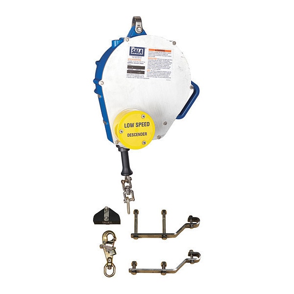 Descent Device, Color Blue, Weight Capacity 310 lb, Standards ANSI Z359, Workers per System 1, Maximum Working Length 115 ft, Rescue System Component Low Speed Descent Device, Rescue Mode Lower, Line Material Steel, Rescue Equipment Type Personal System, Includes Adapter Kit for Slope Descent, Harness End Connection D-Ring, Anchorage End Connection Carabiner, Cable Diameter 0.188 in, Descent Type Sloped, Hardware Material Aluminum, Stainless Steel, Includes Rescue Pole No, Operation Mode Manual