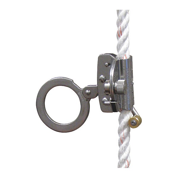 Rope Grab, Tensile Strength 7,000 lb, Weight Capacity 310 lb, Rope Lifeline Component Rope Grab, For Use With Rope Lifeline, Rope Grab Type Trailing, Color Silver, Includes Lanyard No, Rope Grab Material Steel, Shock-Absorbing Lanyard No, For Rope Material Polyester, Polypropylene, For Rope Size 5/8 in, Attachment Point Attachment Eye, ANSI Standards Met ANSI A10.32, ANSI Z359.1, OSHA Standards Met OSHA 1926.502, Detaches from Lifeline Anywhere, Series PRO, Visual Load Indicator No
