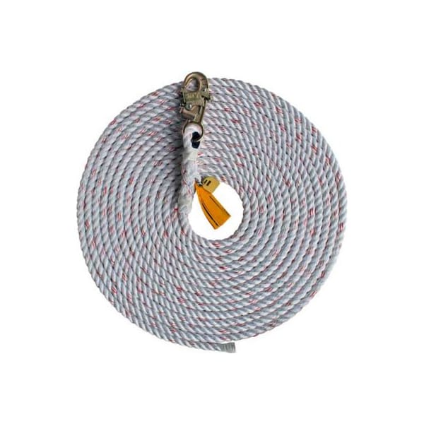 3m dbi-sala 1202754 rope lifeline, 30'l, 310 cap lbs1202754 we offer an exhaustive line of twisted 3-strand and kernmantle type lifelines, available in assembly configurations with a snap hook or simple cut lengths only. We stock various sizes including (12.7 mm), 5/8" (16 mm) and 3/4" (19 mm) in polyester, nylon and polyester/polypropylene blend construction to suit almost any need imaginable. Our lifelines are extremely durable and incorporate unique terminations for added strength and durability. We also offer several styles of counterweights to keep the lifeline taut and optimize performance for rope grab systems. 30 ft. (9 m) rope lifeline 5/8" (16 mm) diameter polyester/polypropylene blend built-in self locking snap hook at one end durable, high strength 5-tuck splice equipped with 3m connected safety id (csid)